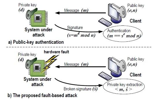 Il fallait y penser, certes, cependant les faits sont là : en influant sur la tension appliquée au processeur de l'une des deux machines communicantes (celle qui détient la clé privée), chercheurs du Michigan ont réussi à provoquer l'émission d'une signature corrompue suite à une erreur de calcul du CPU.